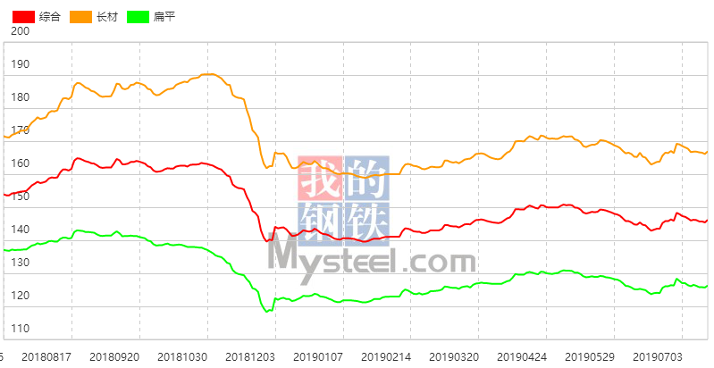 7月16日,國內(nèi)鋼材指數(shù)(Myspic)綜合指數(shù)報146.16(絕對價格指數(shù)4113.2),較上一交易日上漲0.49%。其中,螺紋鋼指數(shù)報159.55點(絕對價格指數(shù)4032.9),較上一交易日上漲0.54%;熱卷指數(shù)報139.62(絕對價格指數(shù)3914.5),較上一交易日上漲0.63%。