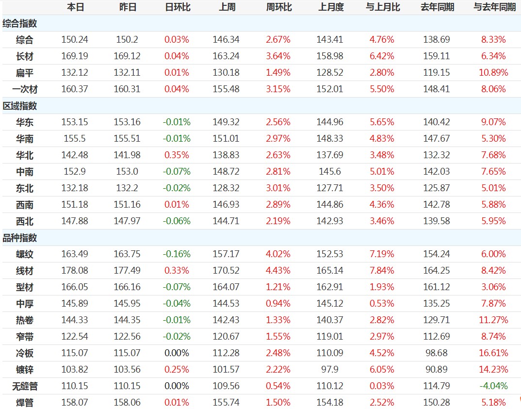 鋼坯周漲70 本周鋼材指數漲幅擴大
